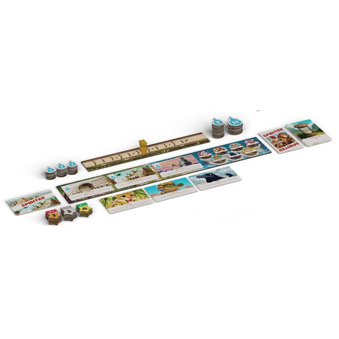 In Spirited, you want to have the most spirit after the final battle. Players gain spirit by marching with clans to forge allegiances, fighting in battles, and building wonders. The clan draw pile contains three "Passing of Time" cards that advance the game one step closer to the final battle when revealed.
